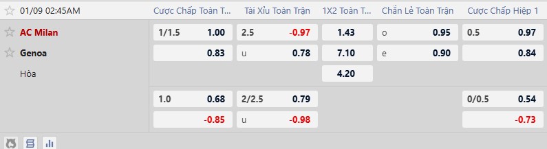 Kèo nhà cái AC Milan vs Genoa hôm nay, 2h45 ngày 9/1