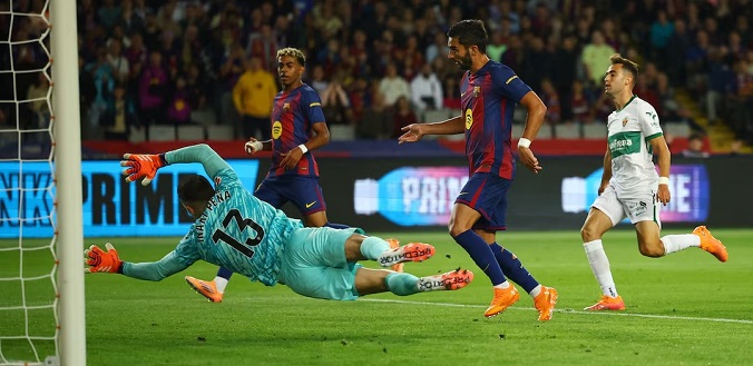 Barcelona: Szczesny; Kounde, Cubarsi, E Garcia, Balde; Casado, De Jong; Yamal, Fermin, Rashford; F Torres.