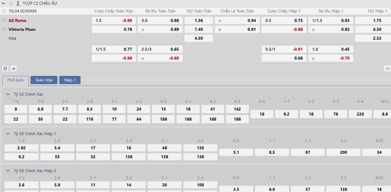 Kèo tài xỉu ở trận đấu này dần hạ nhiệt từ 3 hòa xuống 2 3/4, trong bối cảnh Roma có những căng thẳng và khó bùng nổ. 7/9 trận gần đây cùng 5 trận sân nhà của đội bóng này đều dưới mức 3 bàn. Cả 2 trận sân khách vừa qua của Plzen cũng không có nhiều bàn thắng.