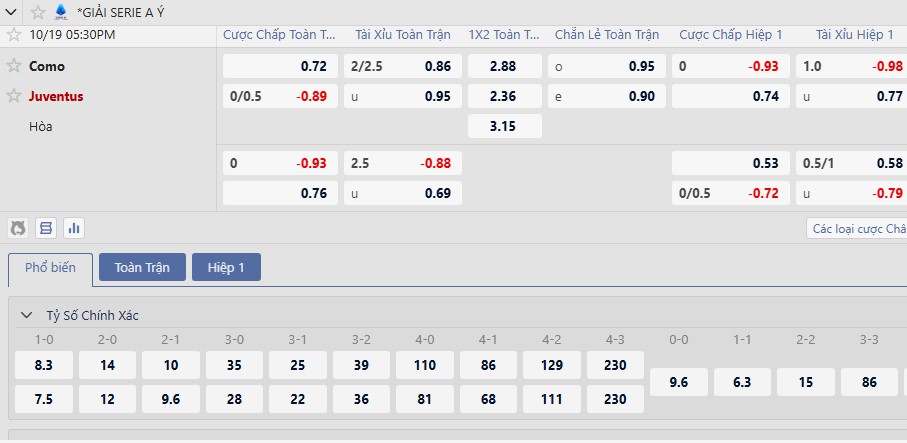 Kèo tài xỉu ở trận này không lên quá cao từ 2 1/2 giảm còn 2 1/4. Como vẫn chơi an toàn và 5/6 trận tại Serie A của đội bóng này, trong đó cả 3 trận sân nhà đều dưới mức 3 bàn. Juventus cũng có diễn biến tương tự ở 3 vòng Serie A gần nhất nên Xỉu là hợp lý.